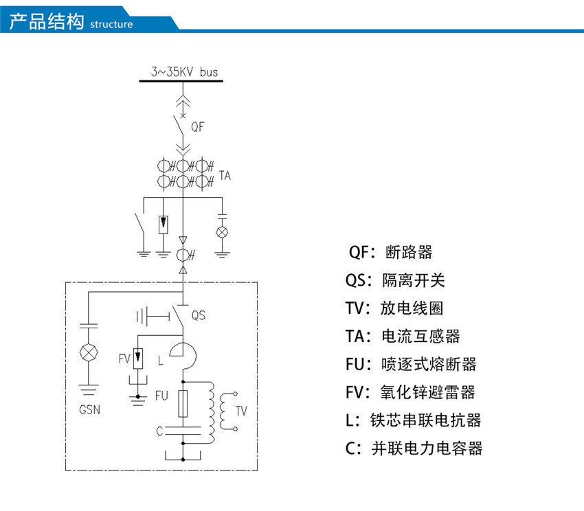MSCHC型高壓無(wú)功集中補(bǔ)償裝置,是將固定容量的電容器組 并聯(lián)連接在配電變壓器3~35kV母線上,提供固定容量的容性無(wú)功功率,補(bǔ)償感性無(wú)功功率,改善功率因數(shù),穩(wěn)定系統(tǒng)電壓,從而降低線路損耗,提高變壓器傳輸容量,提高整體的電力傳輸效率。裝置由并聯(lián)電容器、串聯(lián)電抗器、放電線圈、避雷器、控制和保護(hù)裝置等組成。主要應(yīng)用于3~35kV負(fù)荷波動(dòng)不大的交流電力系統(tǒng)中
